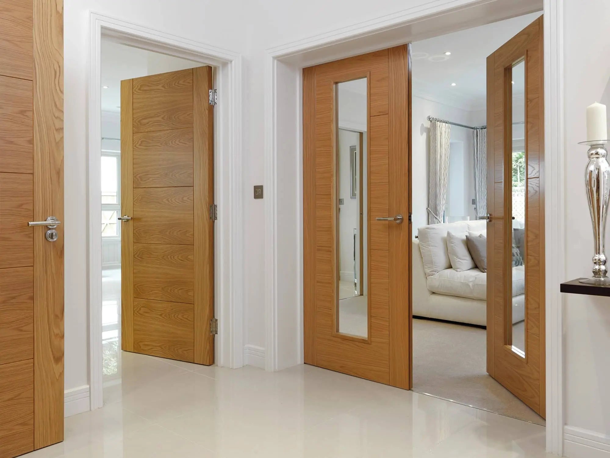 Communal doors, glazed screens, and staircase areas.